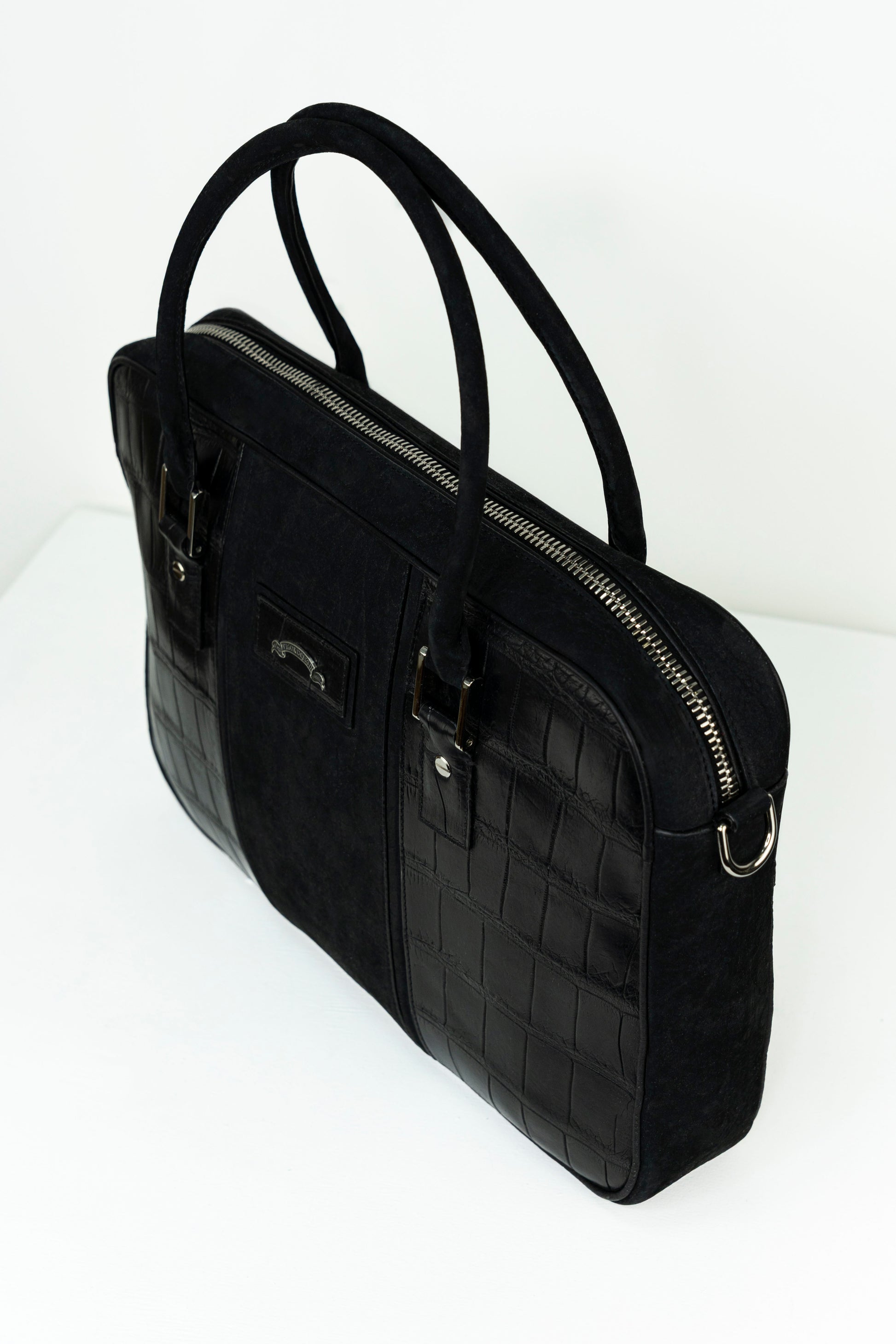 Black Nubuck & Crocodile Laptop Bag