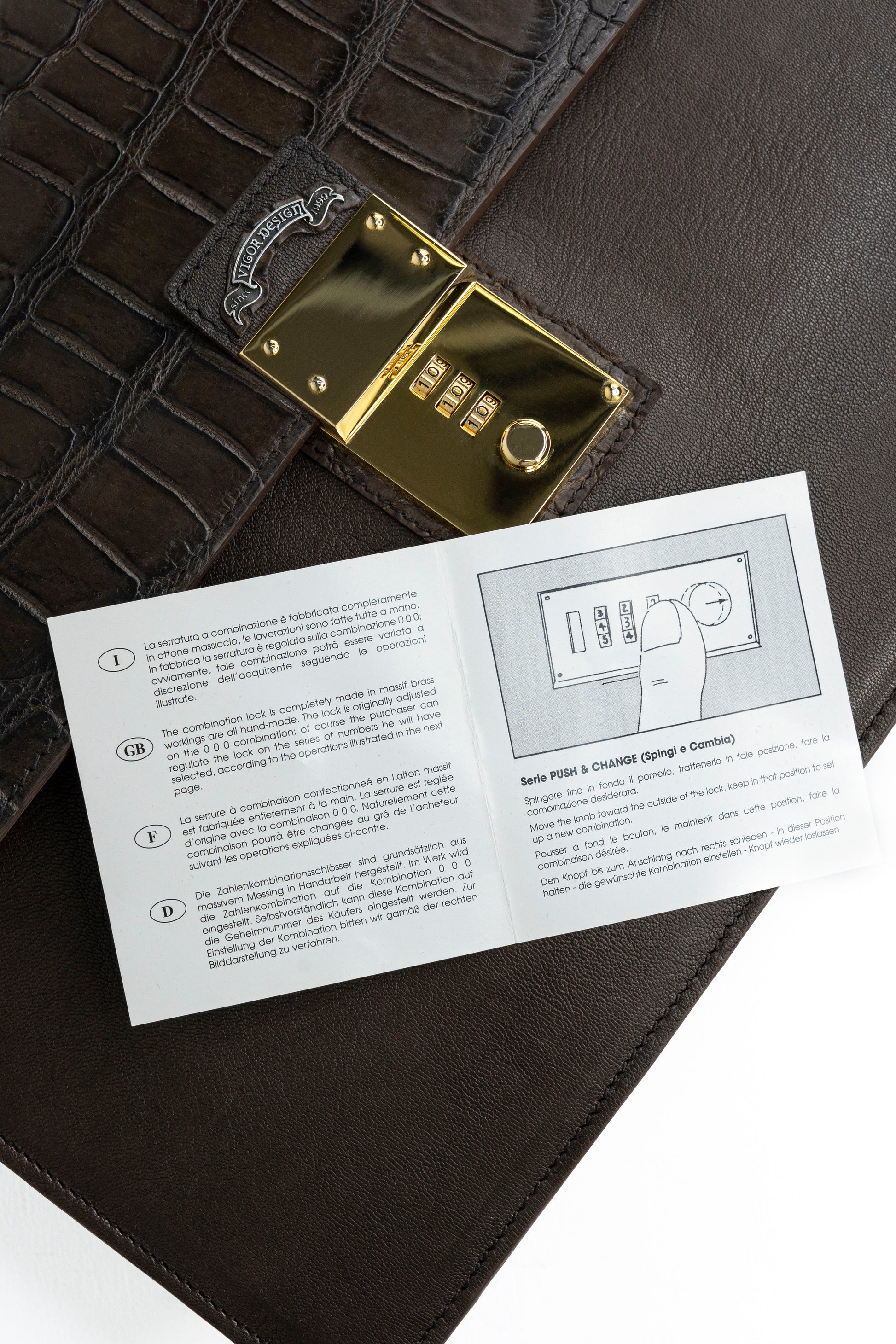 Security: Integrated MMC Colombo gold-tone combination lock for maximum security.