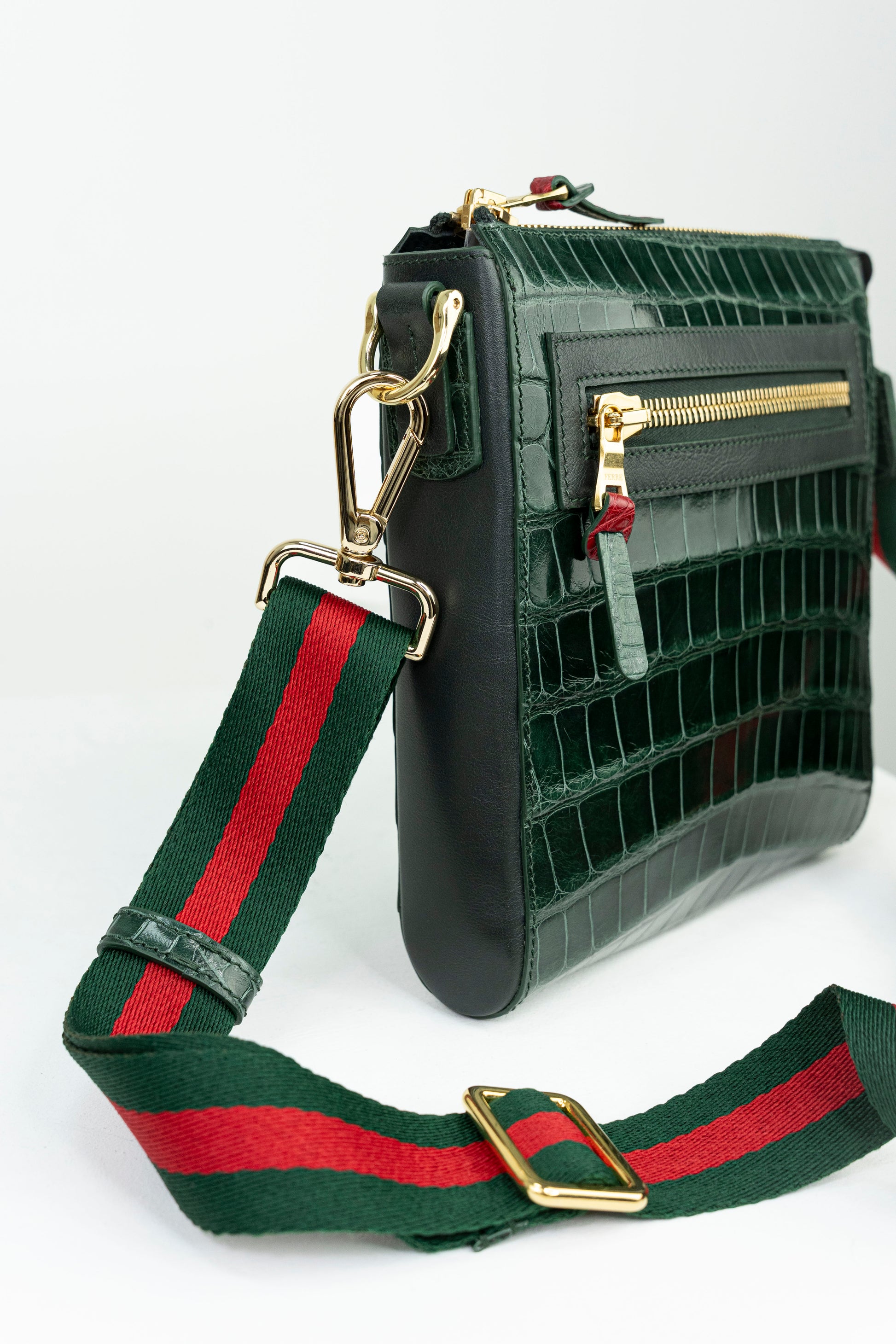 Crocodile Messenger Bag | Emerald & Onyx